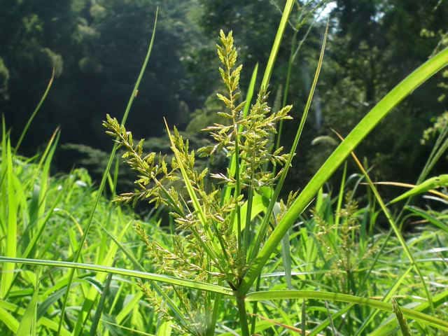 | ▼2012年7月31日 横手林道 | ▼花序枝が分枝する。 | ▼小穂が開出してつく。 |