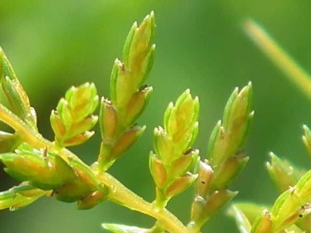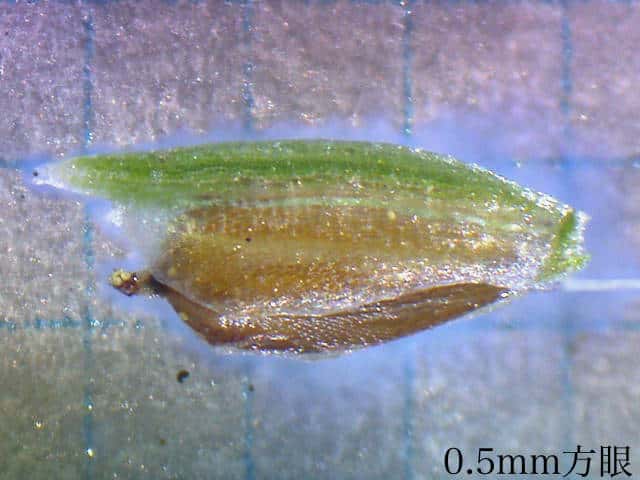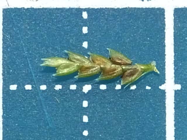 | ▼鱗片の先は小さな芒となる。 | ▼鱗片は長さ約1.6mm。 | |