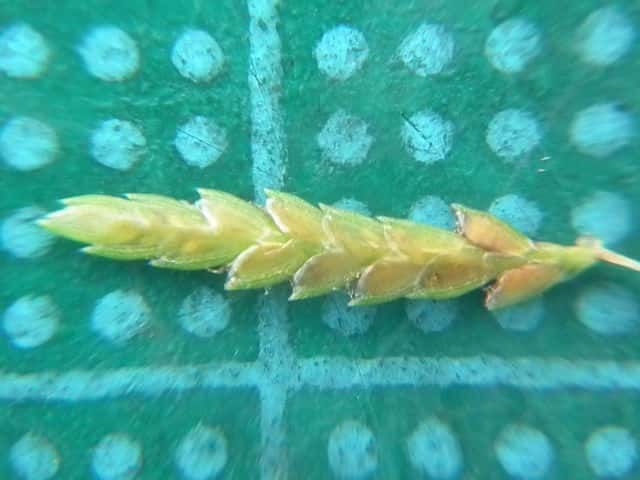 | ▼小穂のつく軸に狭い翼がある。 | ▼小穂は長さ約6mm。 | |