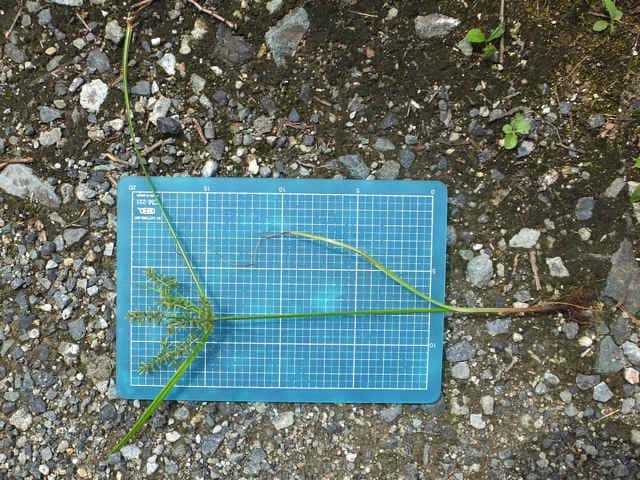 | ▼表面に小さな粒状の突起が密生する。 | ▼茎は長さ約25cm。 | |
