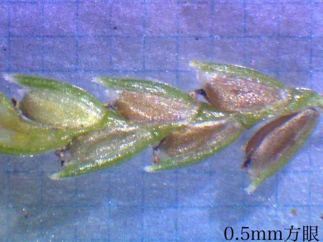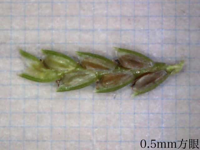 | ▼小穂は長さ約5mm、鱗片中肋は突出する。 | ||