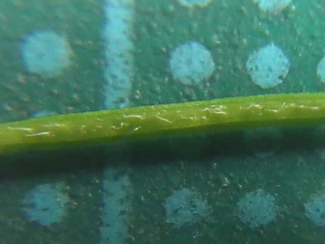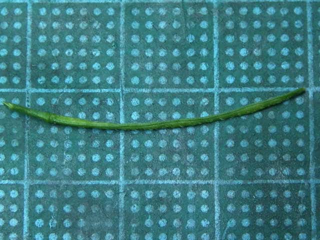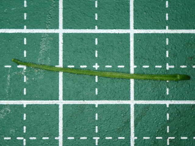 | ▼果実は長さ約2.5cm、幅1.2mm。 | ▼種子が1列に並ぶ。 | ▼種子は長さ約1.5mm。 |