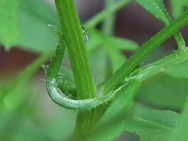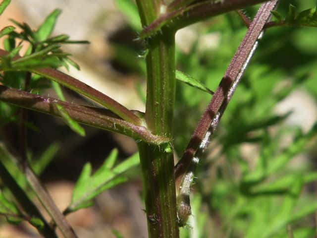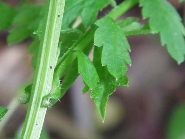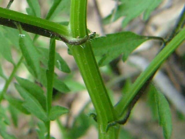 | ▼茎には稜があり、葉柄の基部が茎を抱く。 | ||