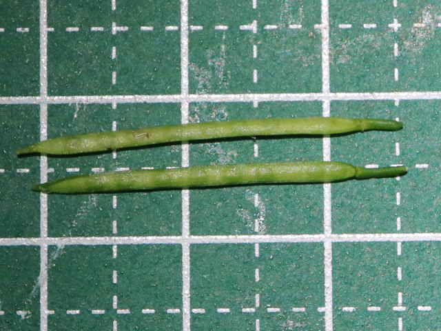 | ▼2011年5月20日 若い果実 島根 | ▼長角果に毛が生えている。 | |