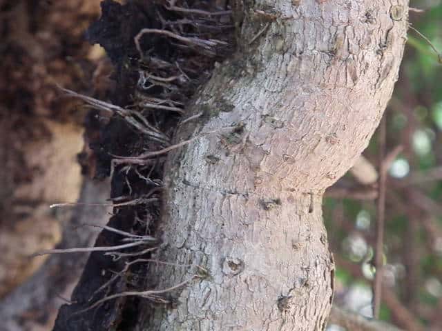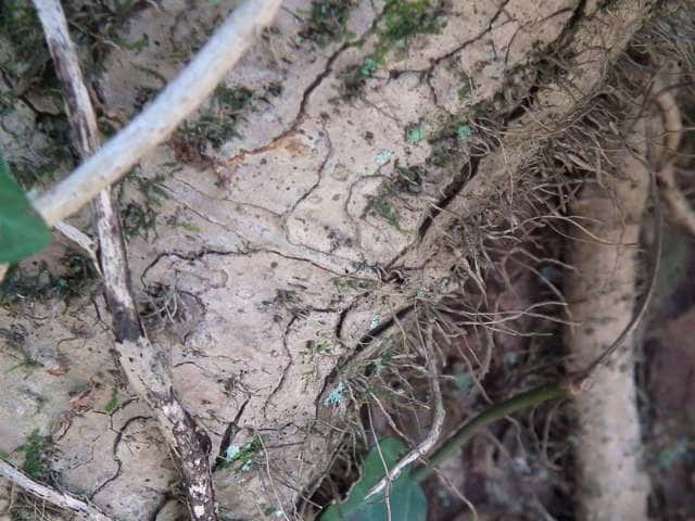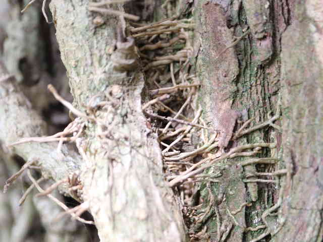| ▼気根を出して樹皮に張り付いている。 | ||