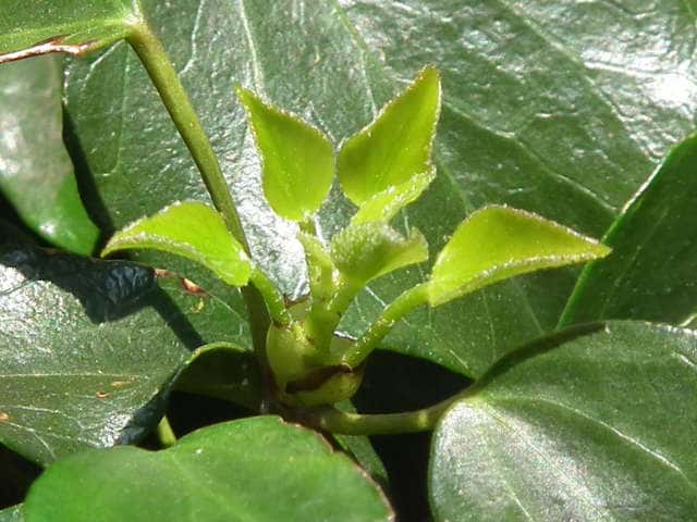 | ▼幼木の葉は3〜5裂する。 | ▼葉は長さ約7cm。 | |