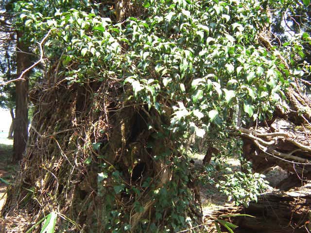 | ▼気根を出して樹木に這い上がる。 | ||