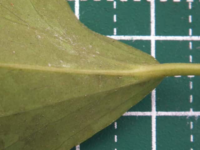 | ▼葉の裏面は無毛。 | ▼葉柄は無毛。 | |
