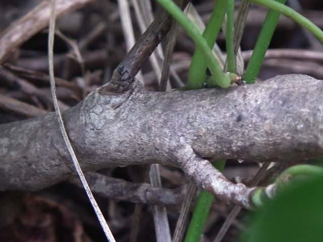 | ▼本年枝は緑色。 | ▼樹皮は灰色。 | |