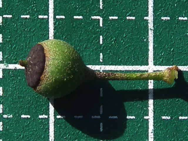 | ▼2014年4月15日 果実 島根 | ▼先端に黒く円形の花盤と花柱が残る。 | |