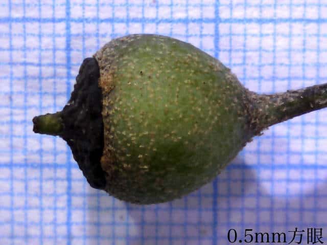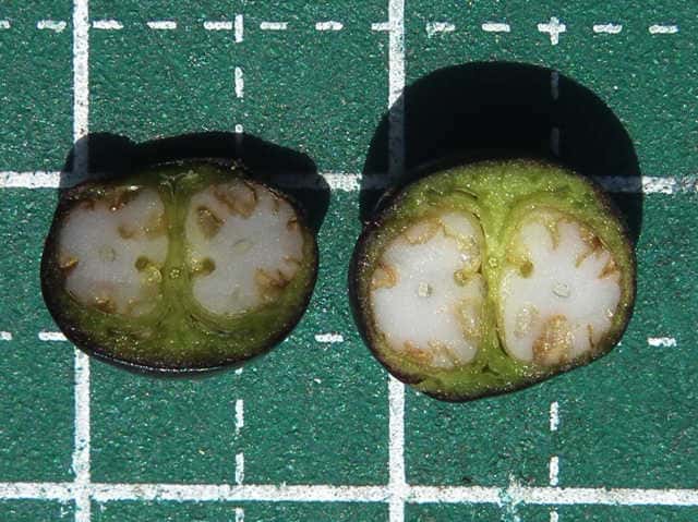 | ▼直径約6mm。 | ▼果実の横断面(上)、縦断面(下)。 | |