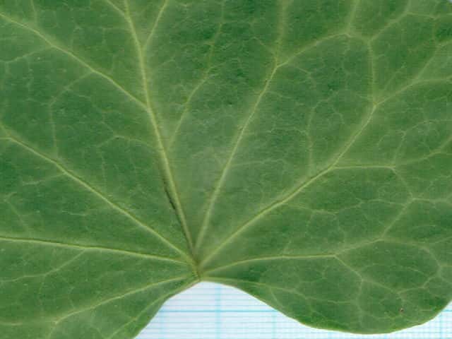 | ▼葉身は長さ約7cm。 | ▼葉柄や葉の両面とも無毛。 | |