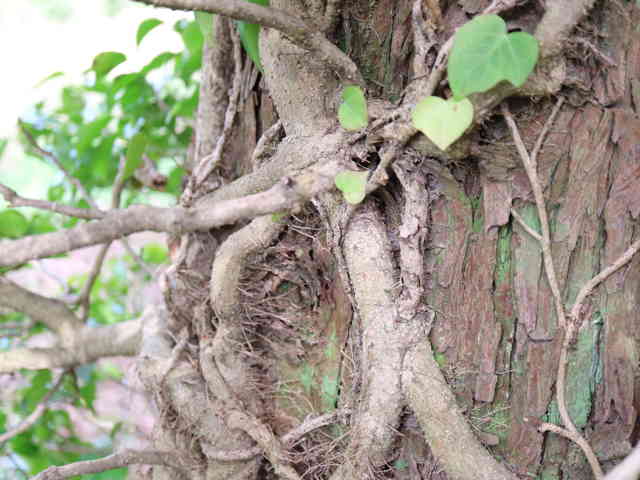 | ▼太いつるが木に這い登る。 | ||