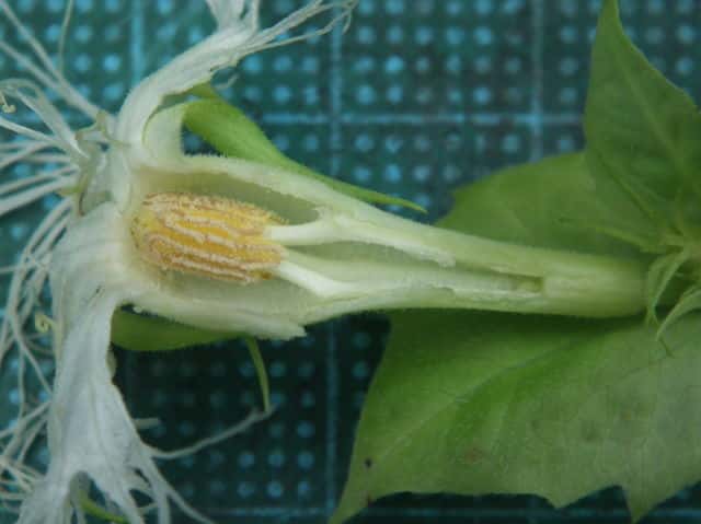 | ▼花筒は長さ約3cm。 | ▼花は直径約7cm。 | |