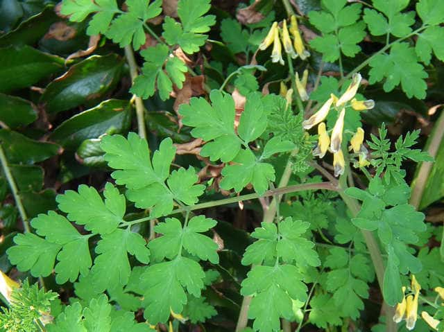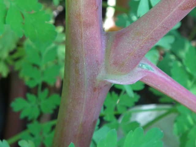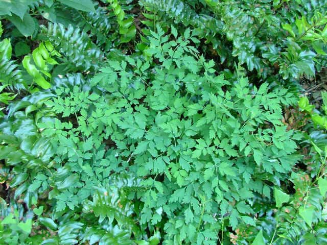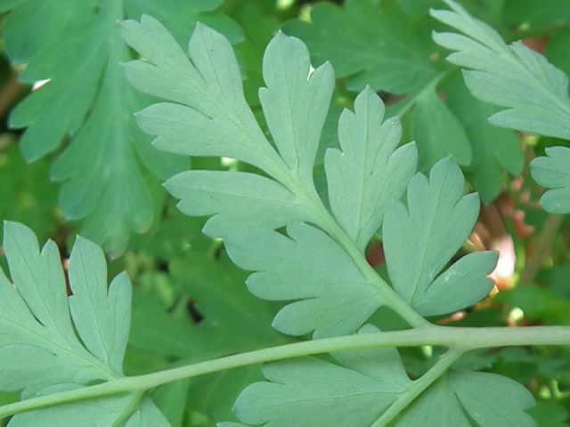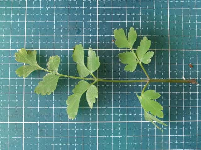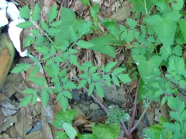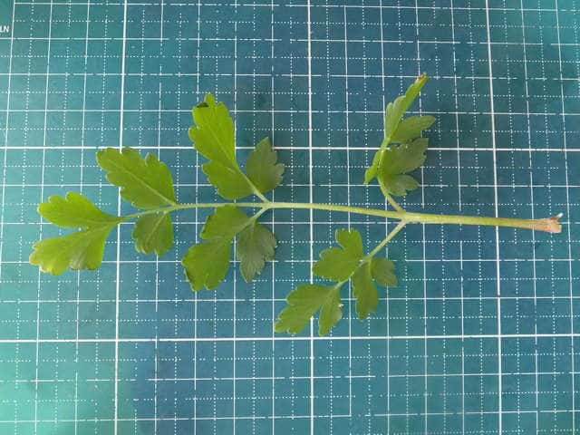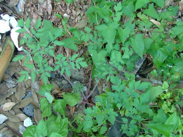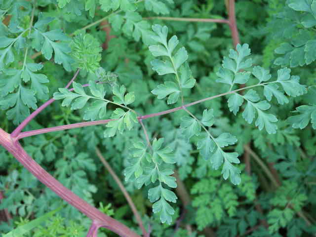 | ▼茎につく葉は2回羽状複生。 | ▼葉は表裏とも無毛。 | |