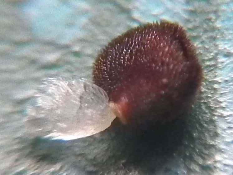 | ▼種子は直径約2mm。 | ▼種枕(エライオソーム)。 | |