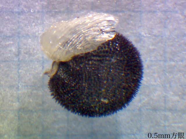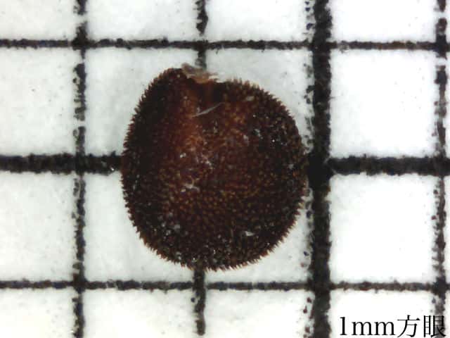 | ▼種子は長さ1.7mm、表面に突起があり、エライオソームがつく。 | ||