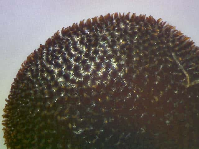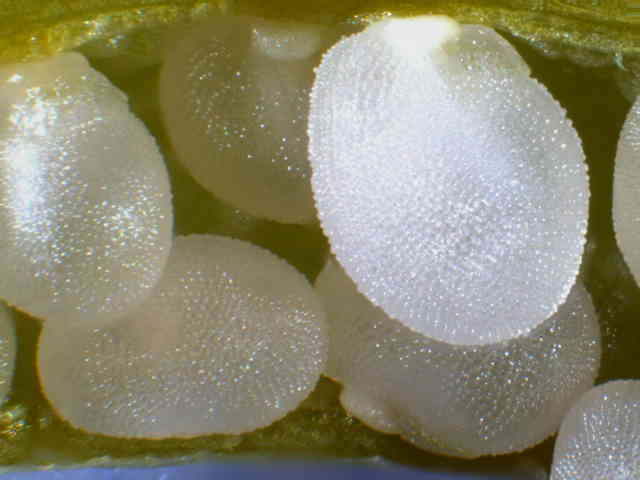 | ▼種子の表面に突起が密生する。 | ▼種子の突起。 | |