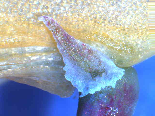 | ▼花は長さ約2.3mm。 | ▼花柄の先端に小さな萼がある。 | |