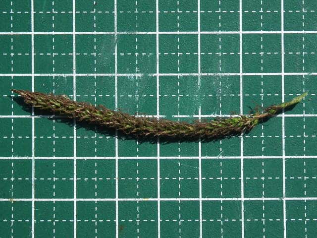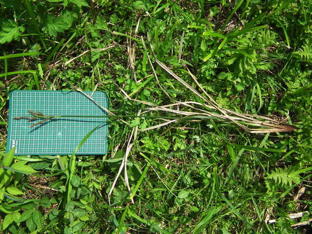 | ▼頂小穂は雄性、長さ約4cm。 | ▼雌小穂は長さ約7cm。 | |