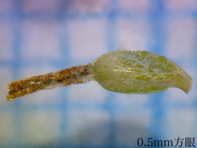 | ▼果胞の口部は斜切形。 | ▼果実は長さ1.3mm。 | |