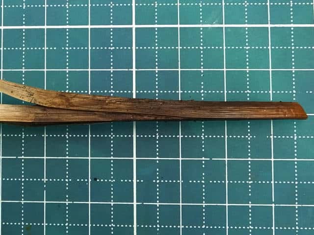 | ▼葉の幅は約1.2cm。 | ▼葉の断面はM字形。 | |