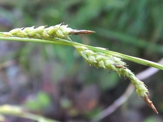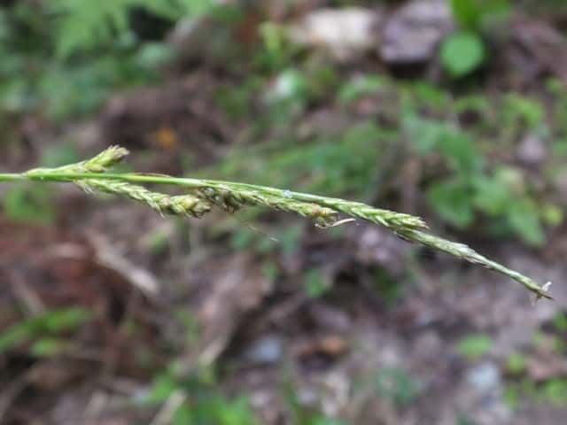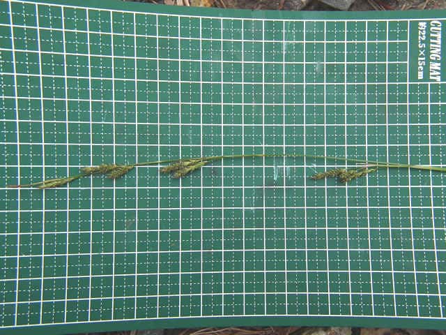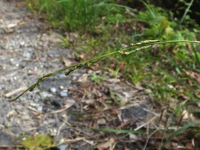 | ▼頂小穂は雄花部が長く、雄花のみに見えるが、小穂の下部に雌花がある。 | ||