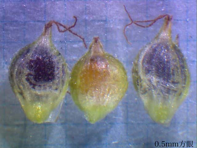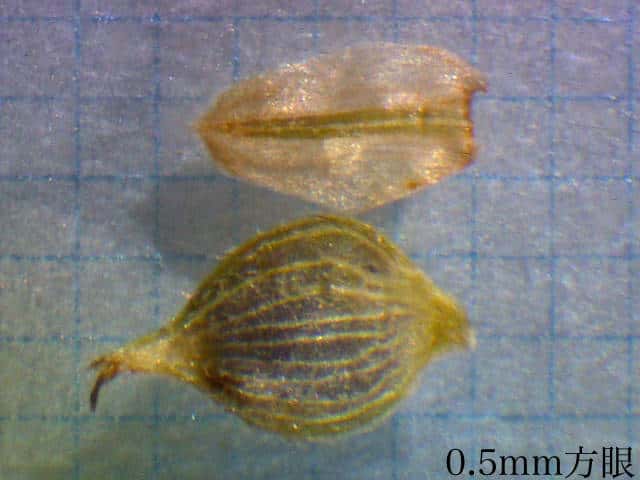 | ▼果実は広卵形、長さ約1.5mm。 | ||