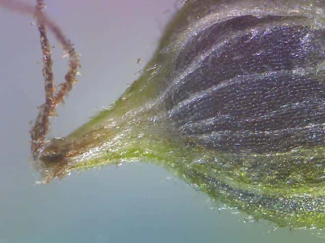 | ▼果胞と鱗片。 | ▼果胞には開出毛がある。 | ▼柱頭は2岐。多数の脈が目立つ。 |