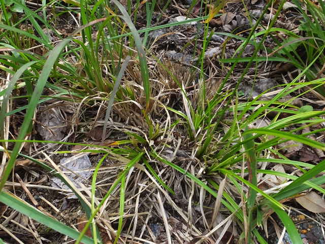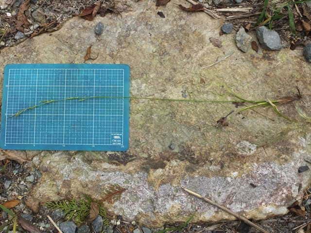 | ▼有花茎は長さ約50cm。 | ▼草刈りされているが、大株となっている。 | |