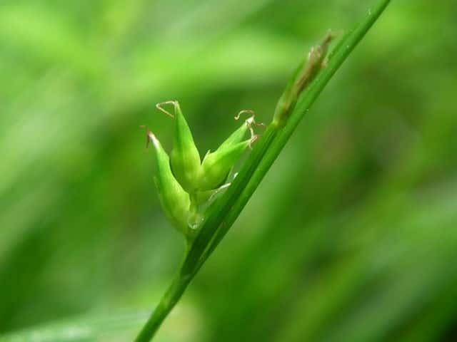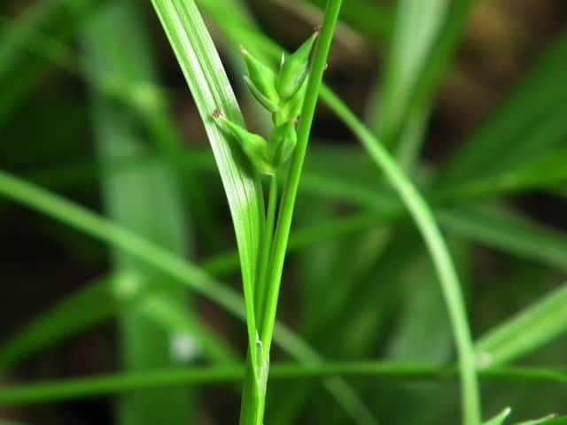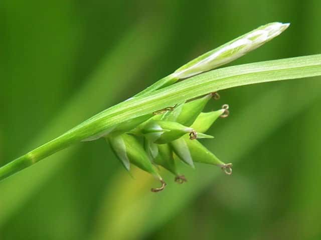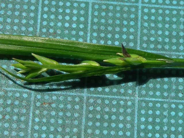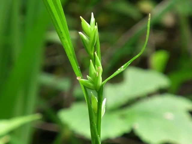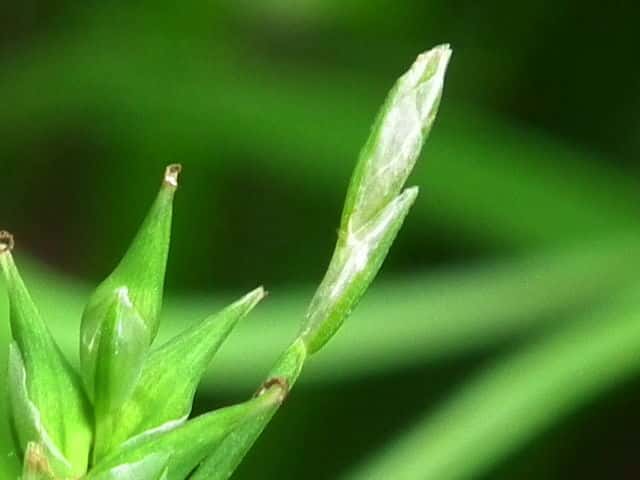 | ▼2014年5月22日 八雲 | ▼雌小穂につく花は少ない。 | ▼雄小穂は小さく、鱗片は緑白色。 |