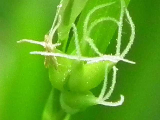 | ▼ここのものは雄小穂の柄が約2cmと長い。 | ▼下部の雌小穂は長い柄がある。 | |