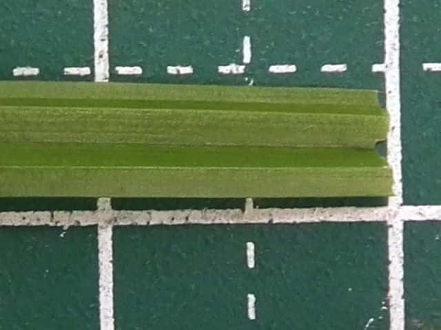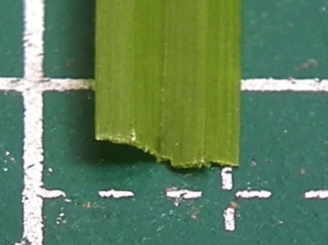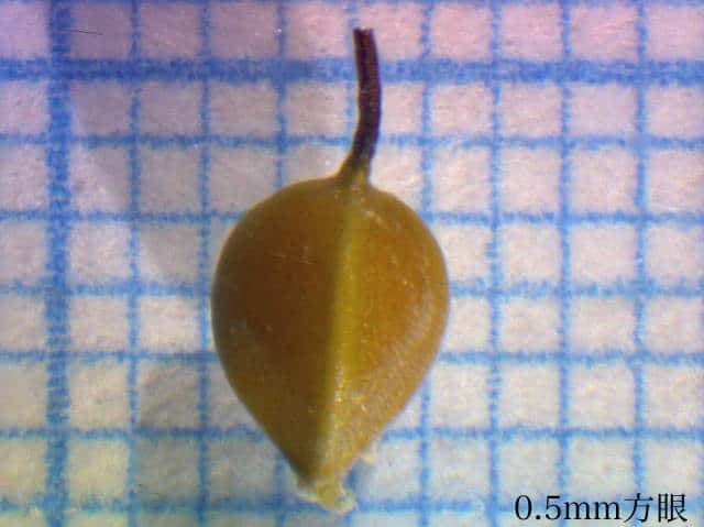 | v果実は長さ約2.5mm。 | ▼葉の幅は約4mm。 | |