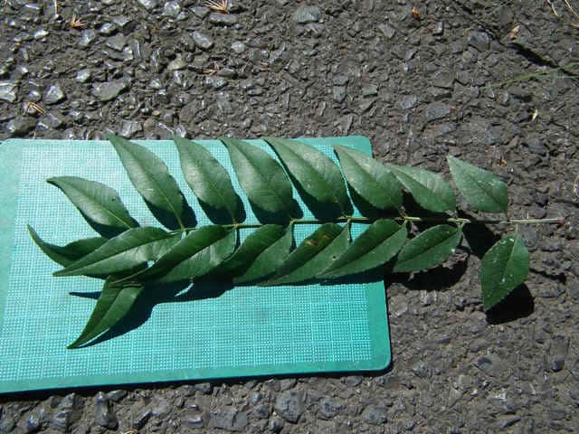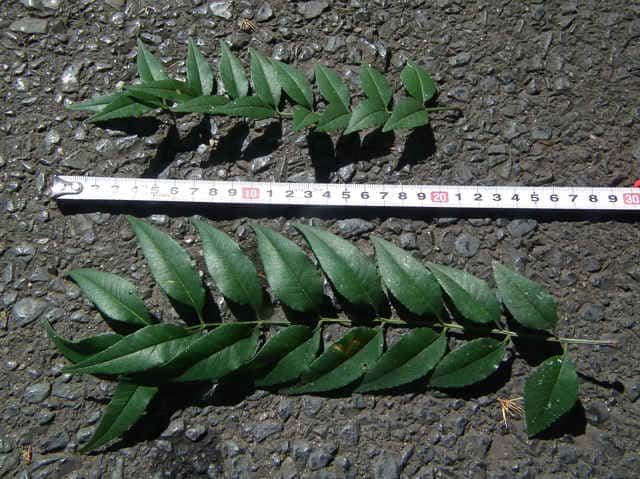 | 詳細が不明ですが、葉の長さが約22cm、小葉が小葉柄を含めて長さ約7cmあるので、コカラスザンショウとしました。 | ||