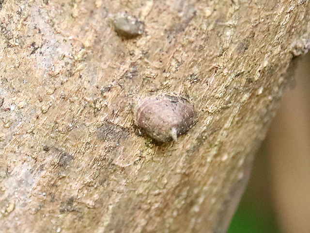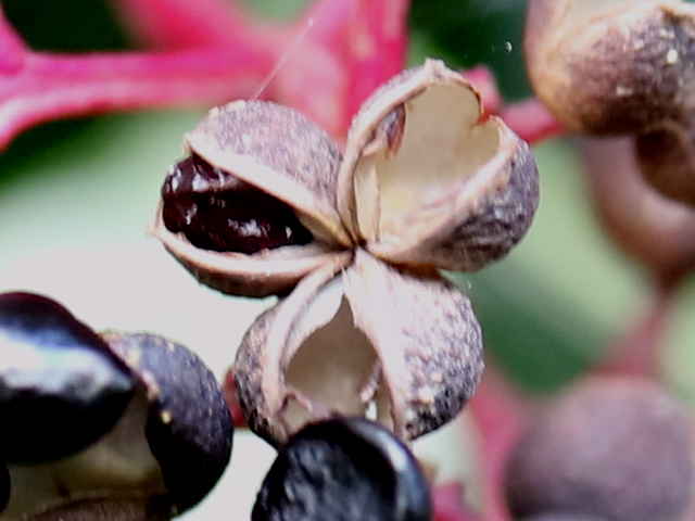 | ▼種子が落ちた3分果の果皮。 | 果皮の裏面。 | |