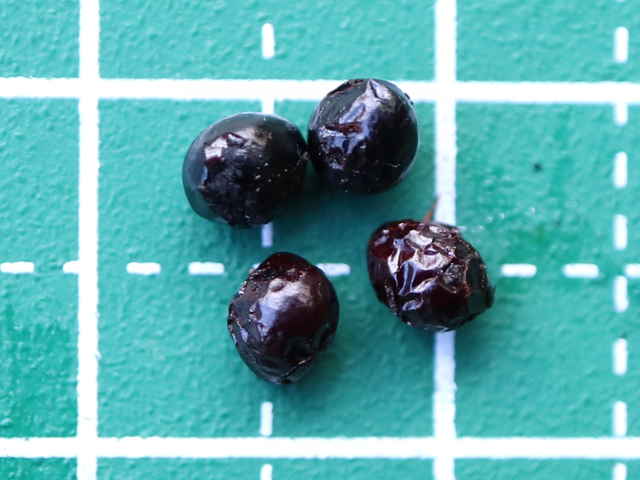| ▼種子は黒色で艶があり、長さ約4mm。 | ||