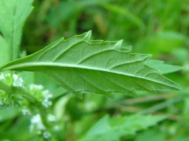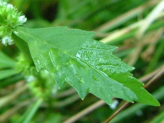 | ▼葉の基部はくさび形になり葉柄がある。 | ▼分果の背面。 | |
