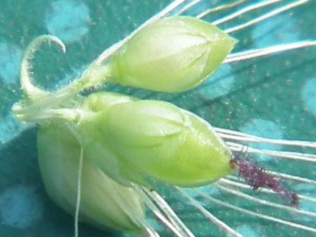 | ▼2007年9月22日 八雲 | ▼第2包穎が短く1/2程度小花が露出する。小穂は長さ約2.6mm。 | |
