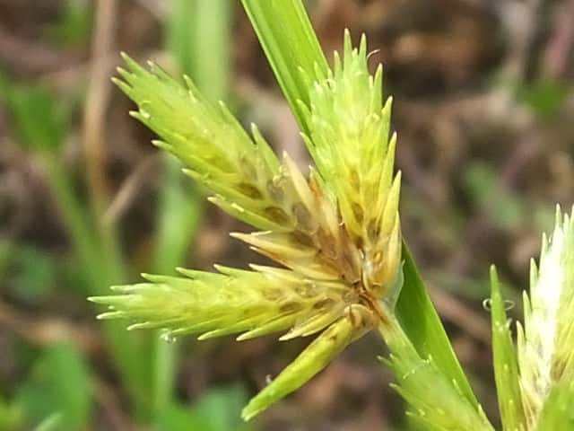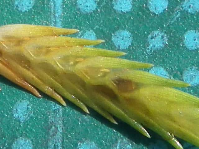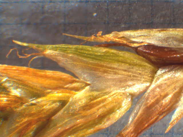 | ▼鱗片の先は芒となる。 | ▼鱗片は長さ約4mm。 | |