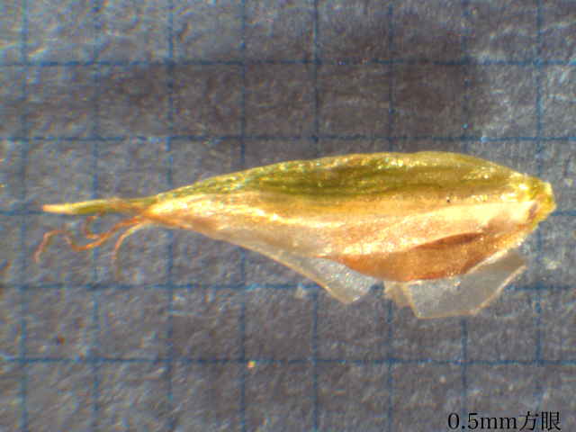 | ▼鱗片の先端は芒となり、柱頭は3岐する。 | ▼鱗片は長さ約3.5mm。 | |