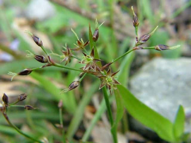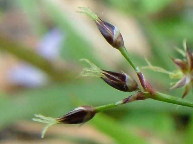 北海道〜九州の高い山に生える。短い走出枝を出す。花被片は通常濃赤褐色を帯び、花糸は葯より少し短い。葉はヌカボシソウよりも広くなるものがある。(原色日本植物図鑑)