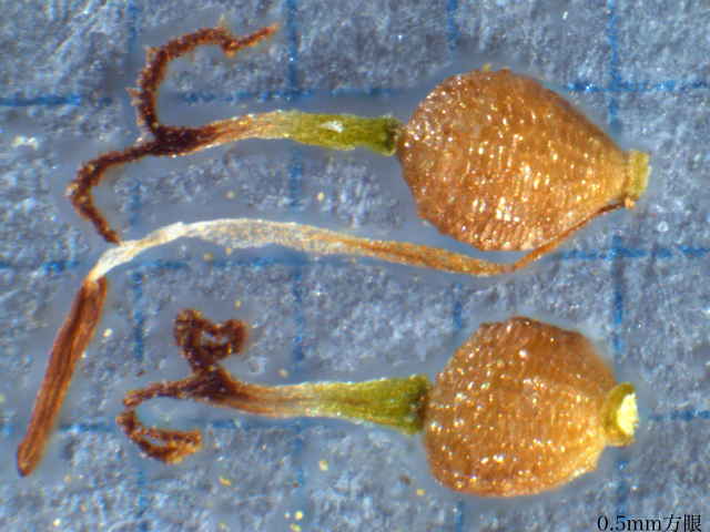 | ▼柱頭は2岐する。 | ▼果実は長さ約0.7mm。 | |