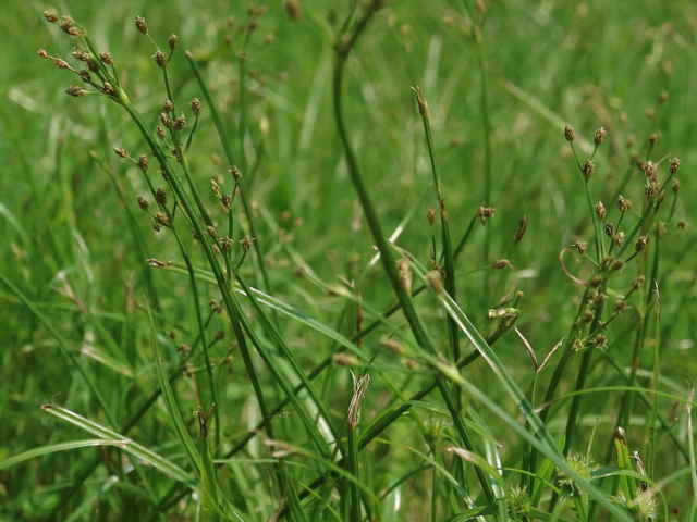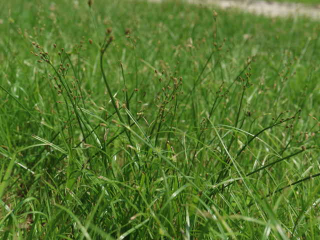 | 1年草又は多年草 本州〜九州の休耕田や池の周辺などの日当たりの良い湿地に生える。植物体はやや叢生し、無毛。稈は高さ15〜40cm、基部に無葉身の鞘がある。葉は幅1.5〜3mm。基部の鞘は暗褐色。花序は散形。苞葉の葉身は4〜8枚、花序より短い。小穂は卵形、長さ約4mm、褐色、鈍頭。鱗片は倒卵形、長さ約2mm、淡褐色、鈍頭。そう果は倒卵形、長さ0.7mm、完熟すると淡褐色になり、表面に格子紋がある。柱頭は2個。花柱は扁平でなく、やや細く、平滑。花期は8〜10月。(岡山県カヤツリグサ科植物図譜) 学名は、Fimbristylis diphylloides カヤツリグサ科テンツキ属 |