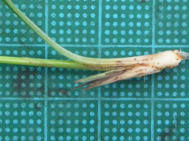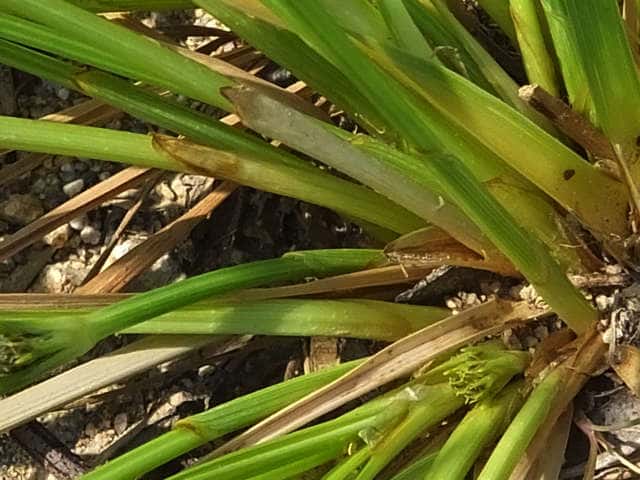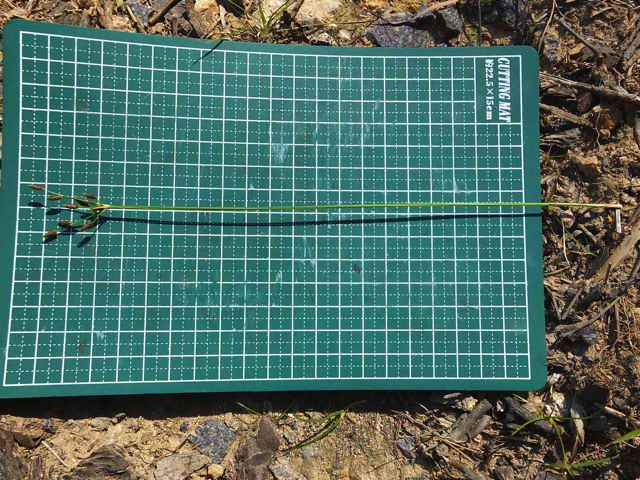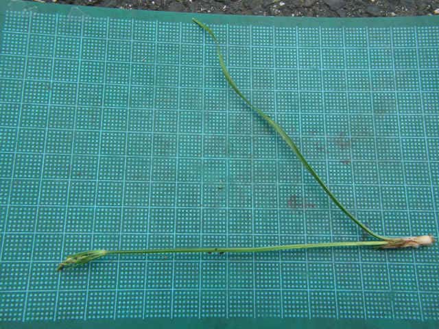 | ▼茎の高さは約9cm。 | ▼茎の基部に葉身のない鞘がある。 | |