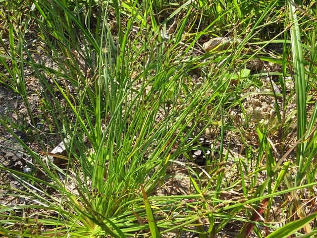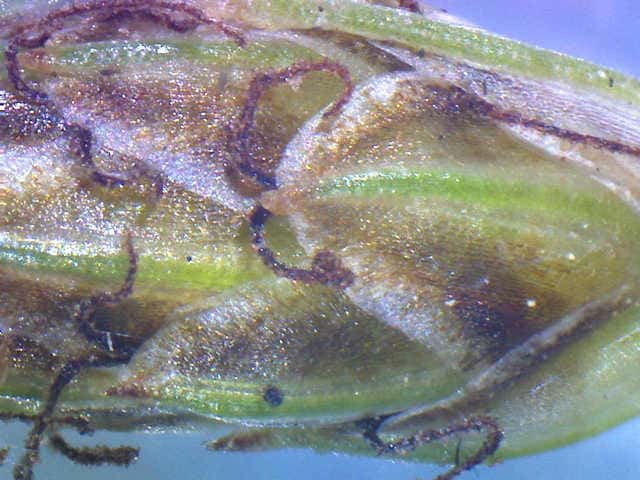 | ▼苞葉は長さ1cm程度と短い。全体無毛。 | ▼小穂は長さ約4mm。 | |