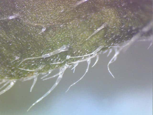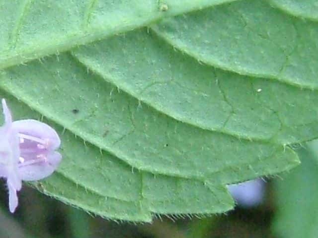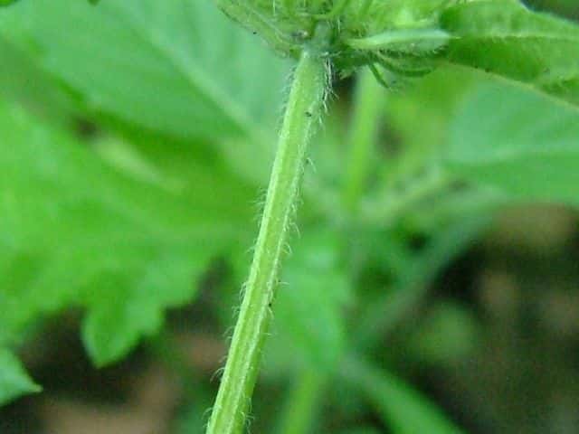 | ▼腺点と脈上の毛が散生する。 | ▼茎には下向きの毛がある。 | |