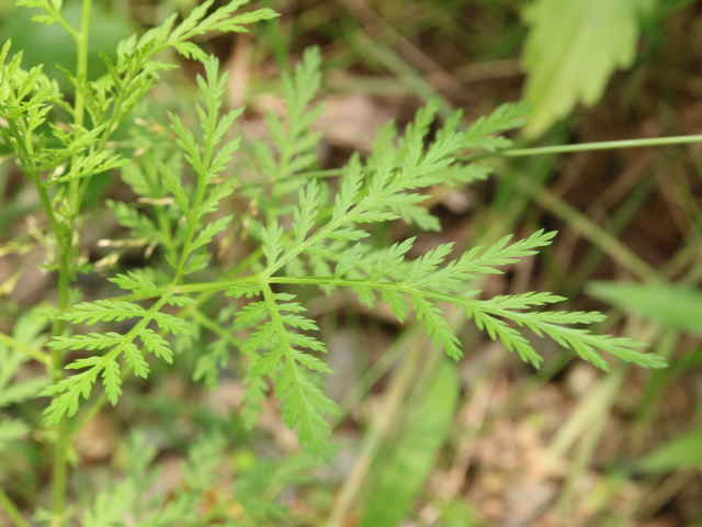 | ▼2019年7月17日 幼株 東出雲 | ▼葉は3回羽状深裂。 | |