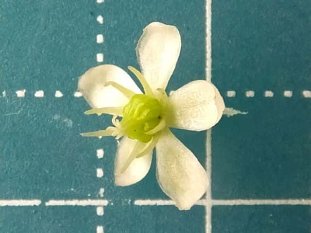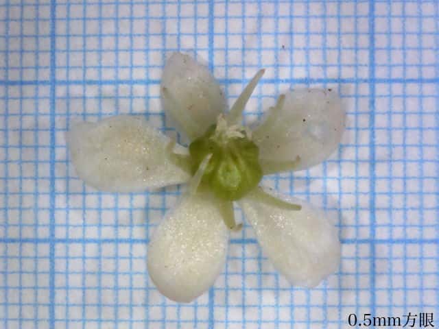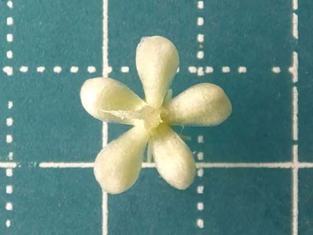 | ▼花は直径約8mm。 | ▼花には花弁はない。 | ▼花の裏面、萼が花弁に見える。 |