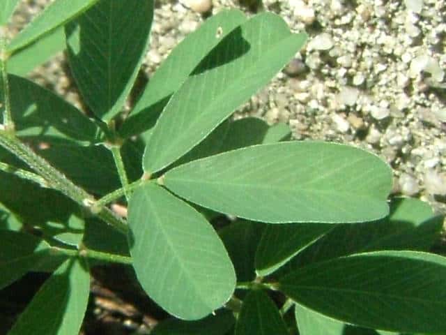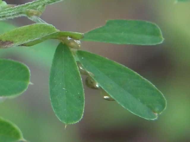 | ▼下部の大きな葉は、頂小葉の長さ約1.5cm。 | ▼挟三角形、長さ約1mmの短い托葉。 | |