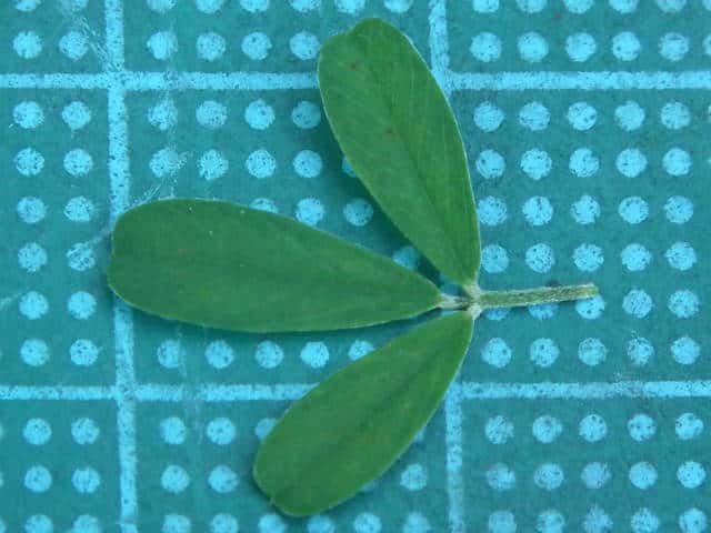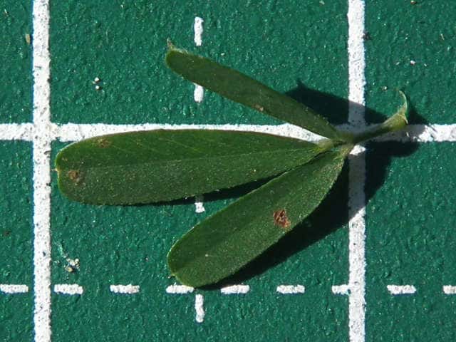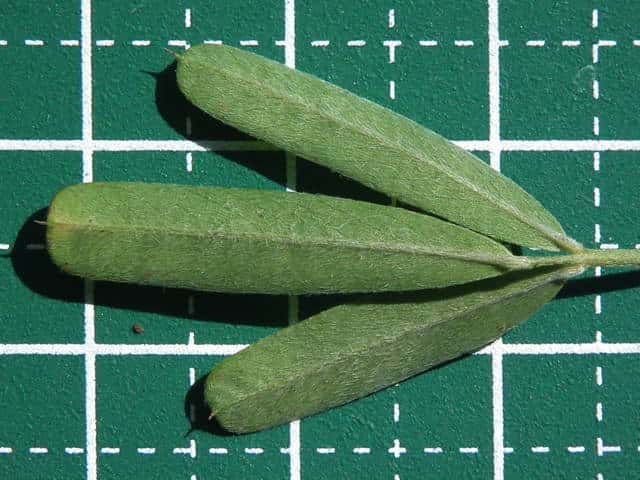 | ▼頂小葉は長さ約9mm。 | ▼小葉の先端は切形、芒状突起がある。 | ▼小葉の表面に短い伏毛が多い。 |